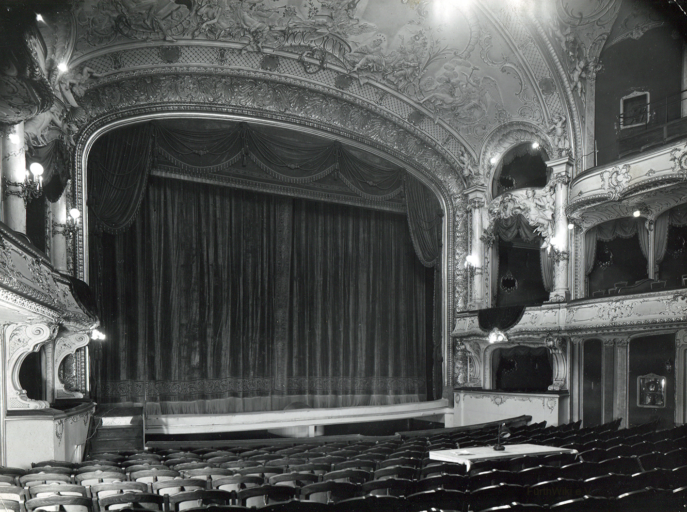 | Beschreibung | Stadttheater Fürth, Innenraum mit Bühne, 1937 | ||