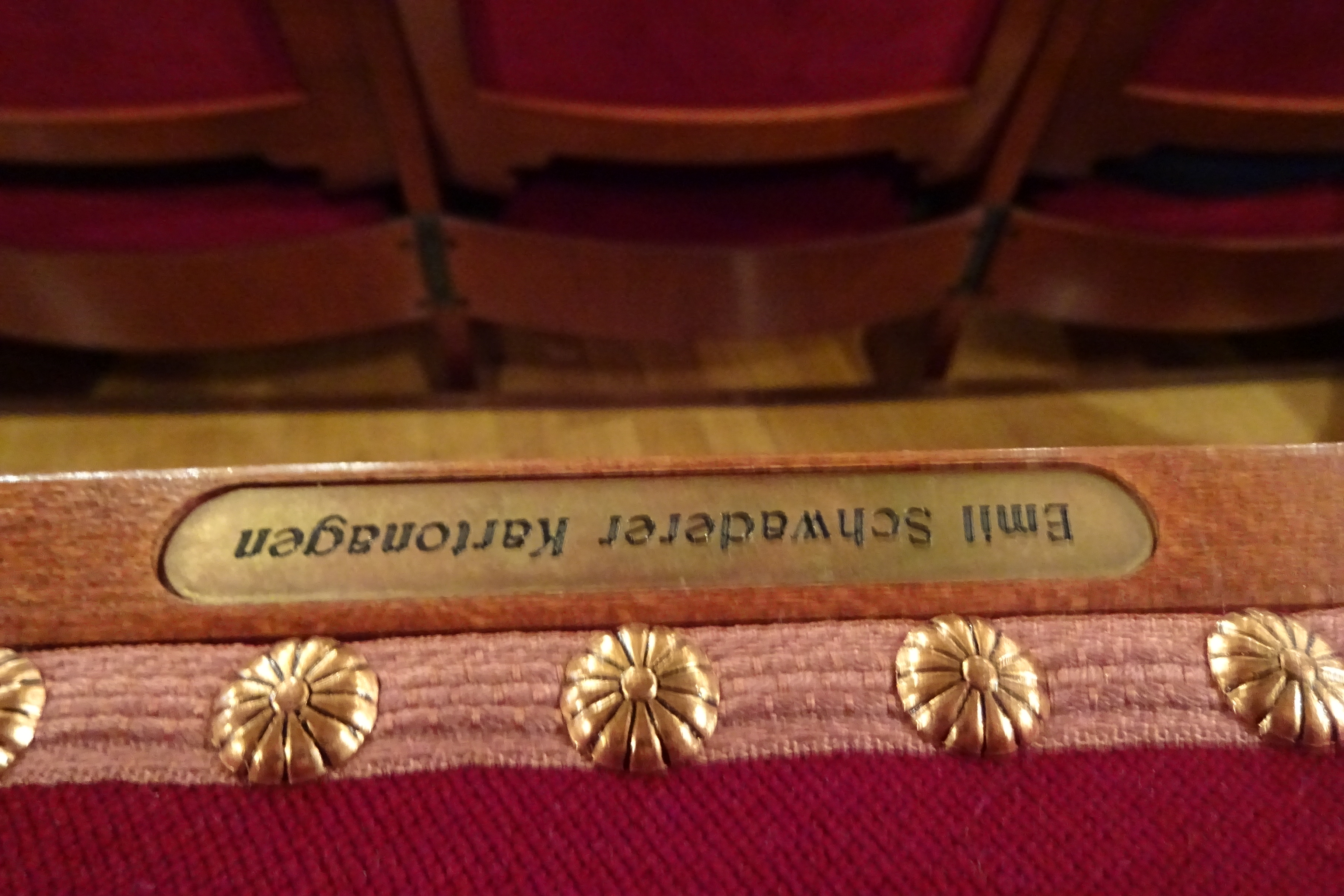 | Beschreibung | Stuhlpaten Plakette zur Mitfinanzierung der damaligen neuen Bestuhlung an der Sitz Vorderseite im März 2025 | ||