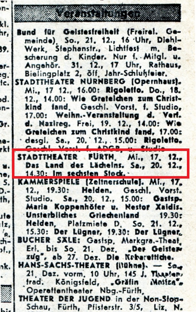 | Beschreibung | Stadttheater Anzeige in der FN vom 17.12.1947 | ||