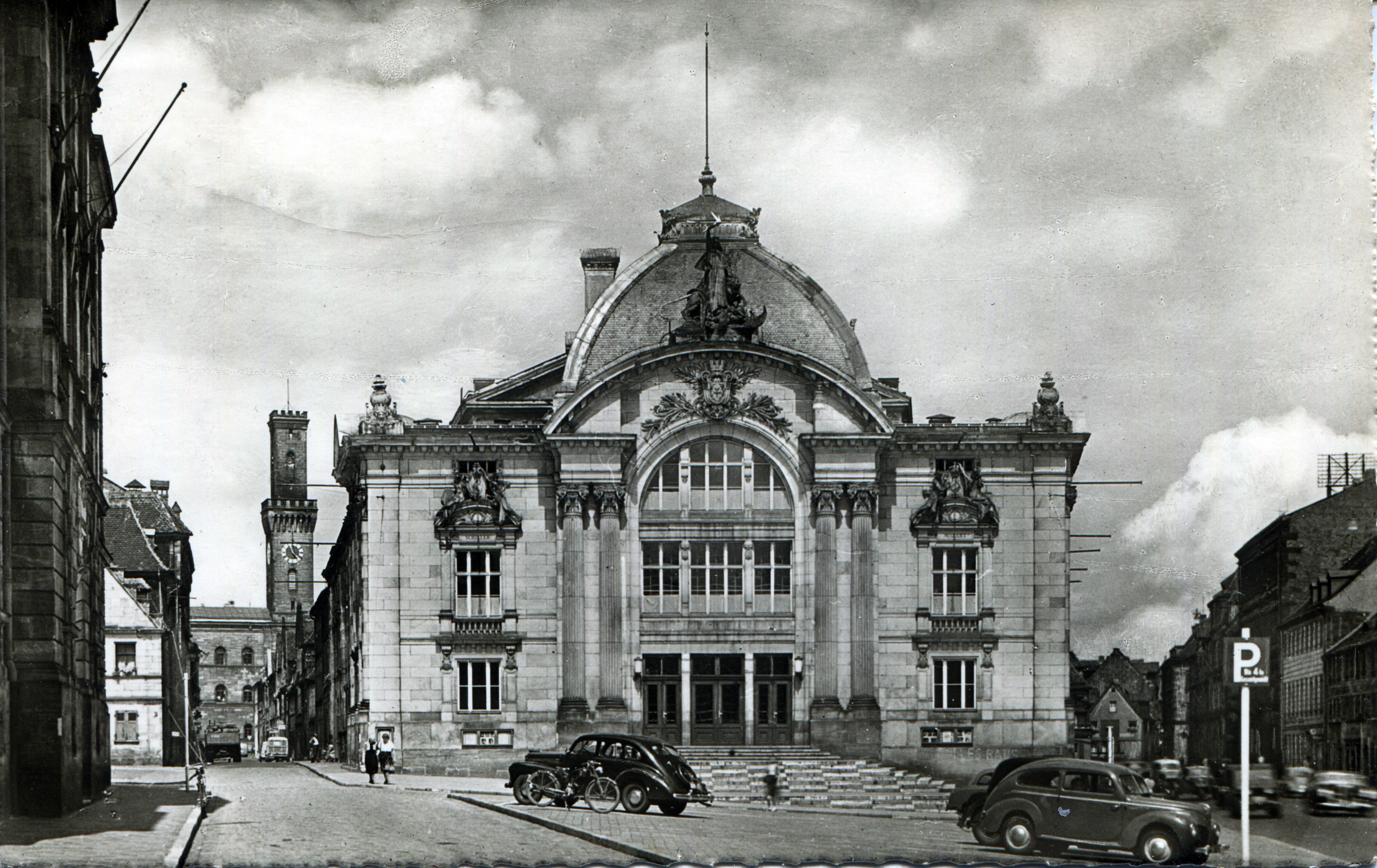 | Dateiinfo (Bild-Unterschrift und Info-Box, automatisch erstellt) | Stadttheater mit zeitgemäßen Fahrzeugen davor, gel. 1955 Urheber: unbekannt<br>Erstellungsdatum: 10. Mai 1955<br>Lizenz: cc-by-sa-3.0 | ||