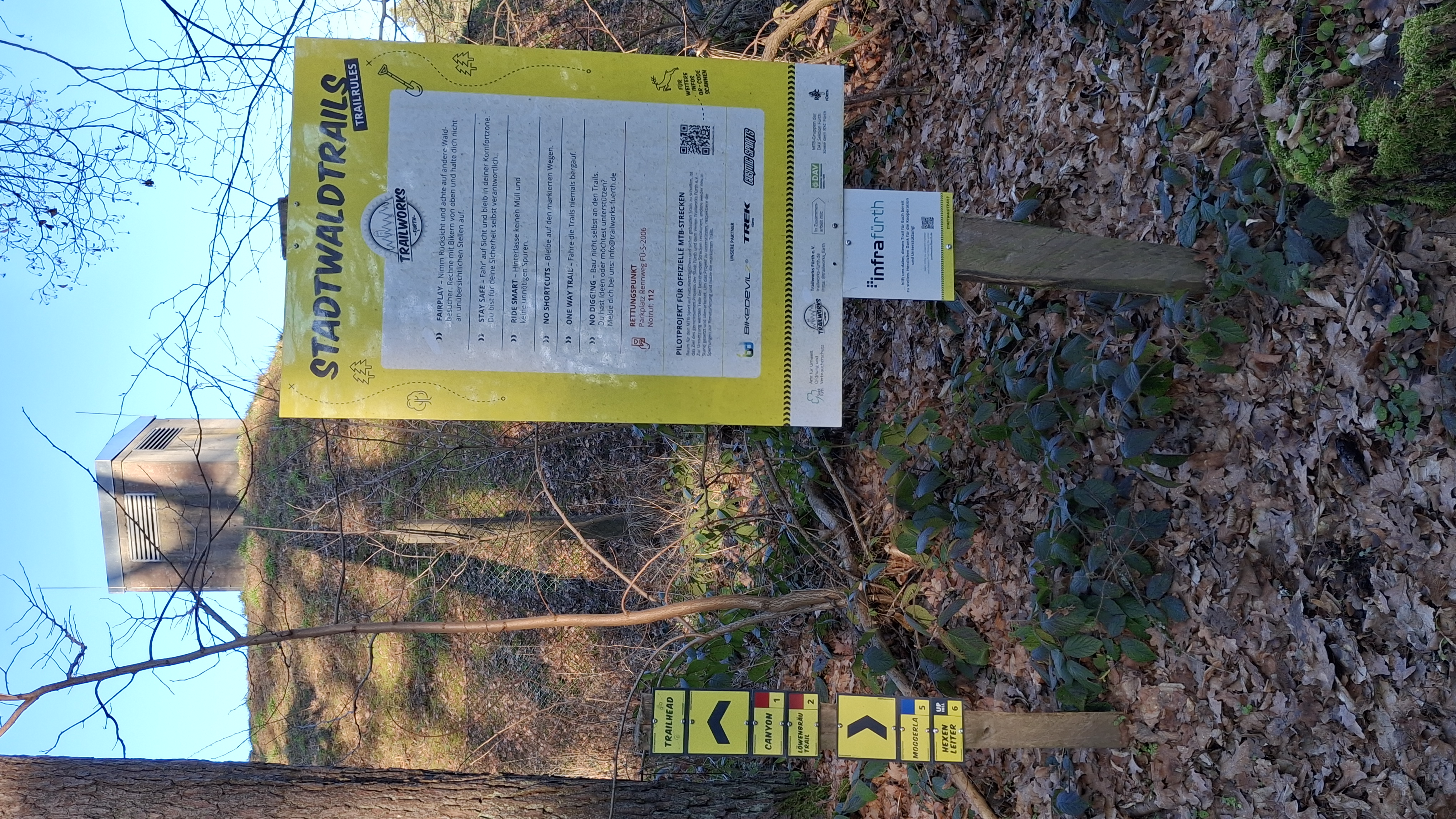 Datei:Stadtwald Fürth Wegeschild trailworks.jpg