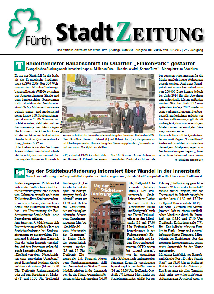 | Beschreibung | Titelseite der Stadtzeitung vom 29. April 2015 | ||