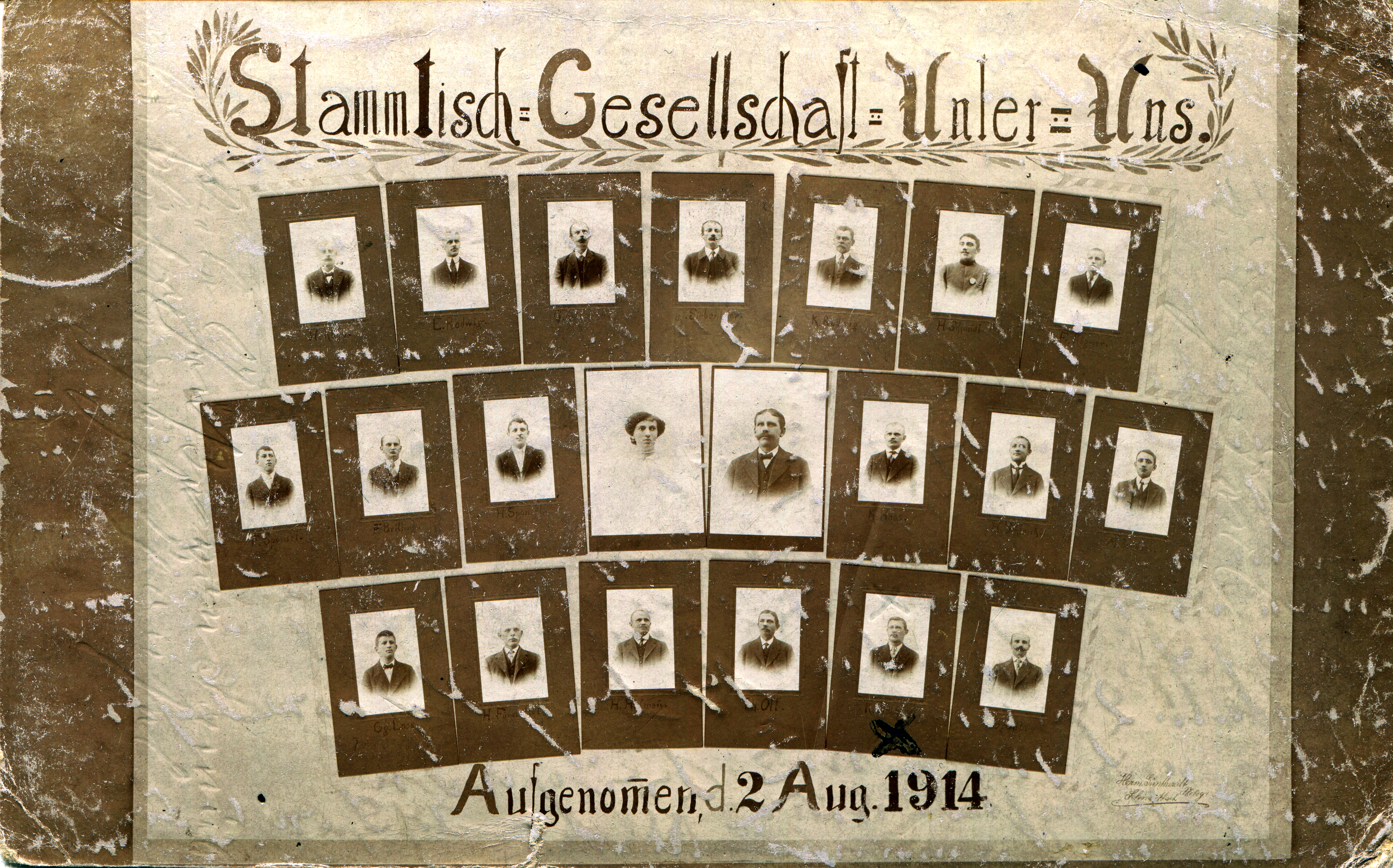BeschreibungStammtisch Gesellschaft Unter Uns, Aufnahme von 2. August 1914, gel. 1914 in Fürth