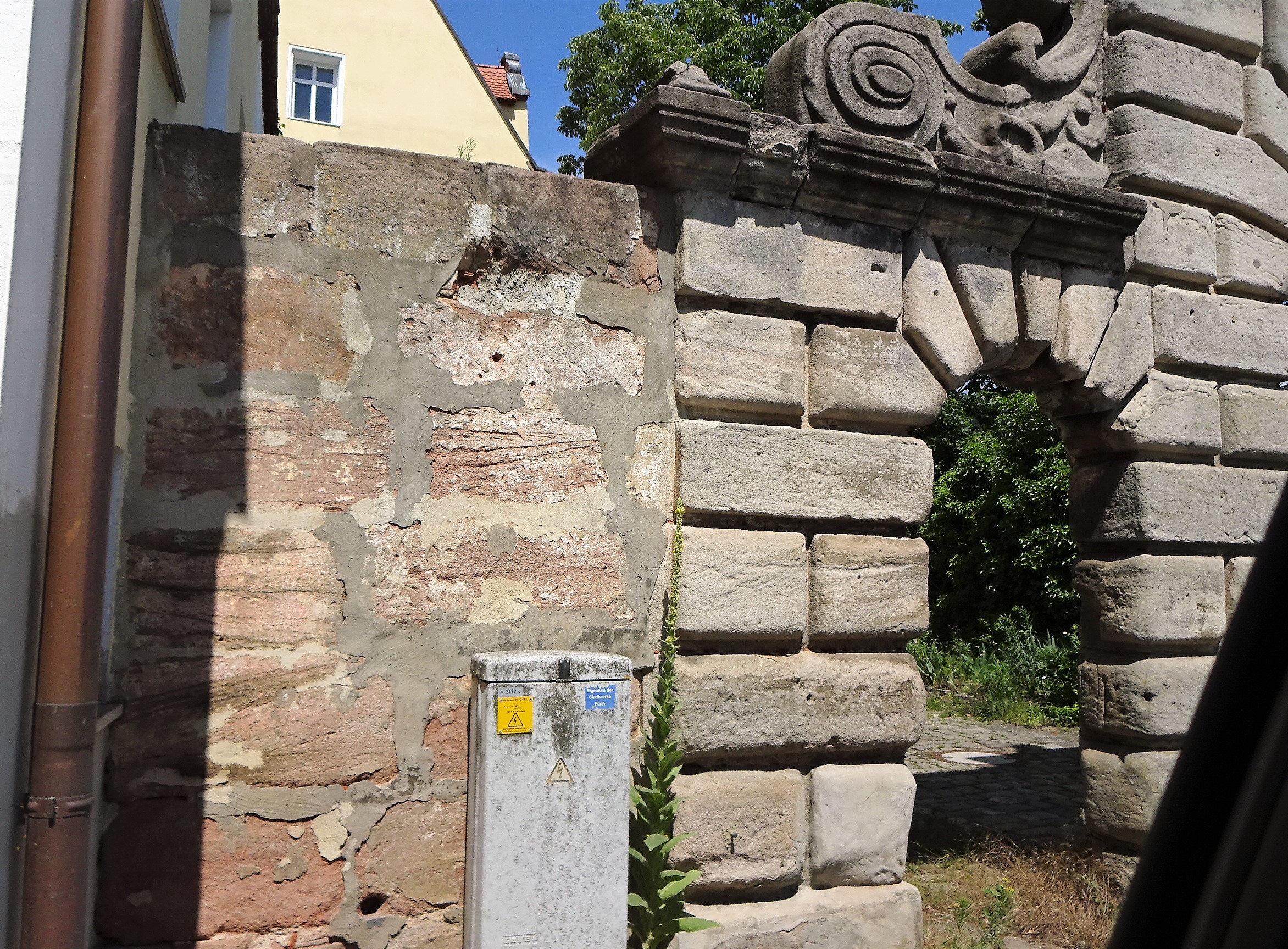 Details Mauer und Eingangspforte zum Schloss Steinach 7; Steinach 7a im Juni 2020