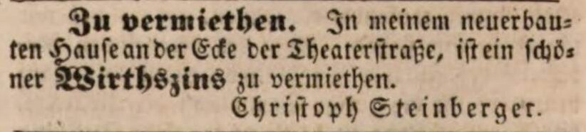 | Beschreibung | Zeitungsanzeige des Bierbrauers Christoph Steinberger, Oktober 1849 | ||