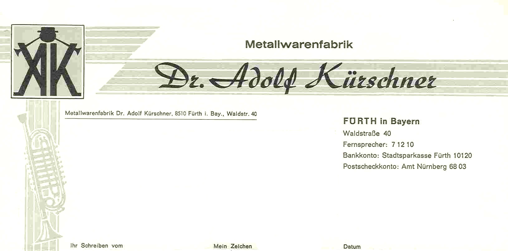 | Beschreibung | Briefkopf der Firma Dr. Adolf Kürschner von 1963 | ||