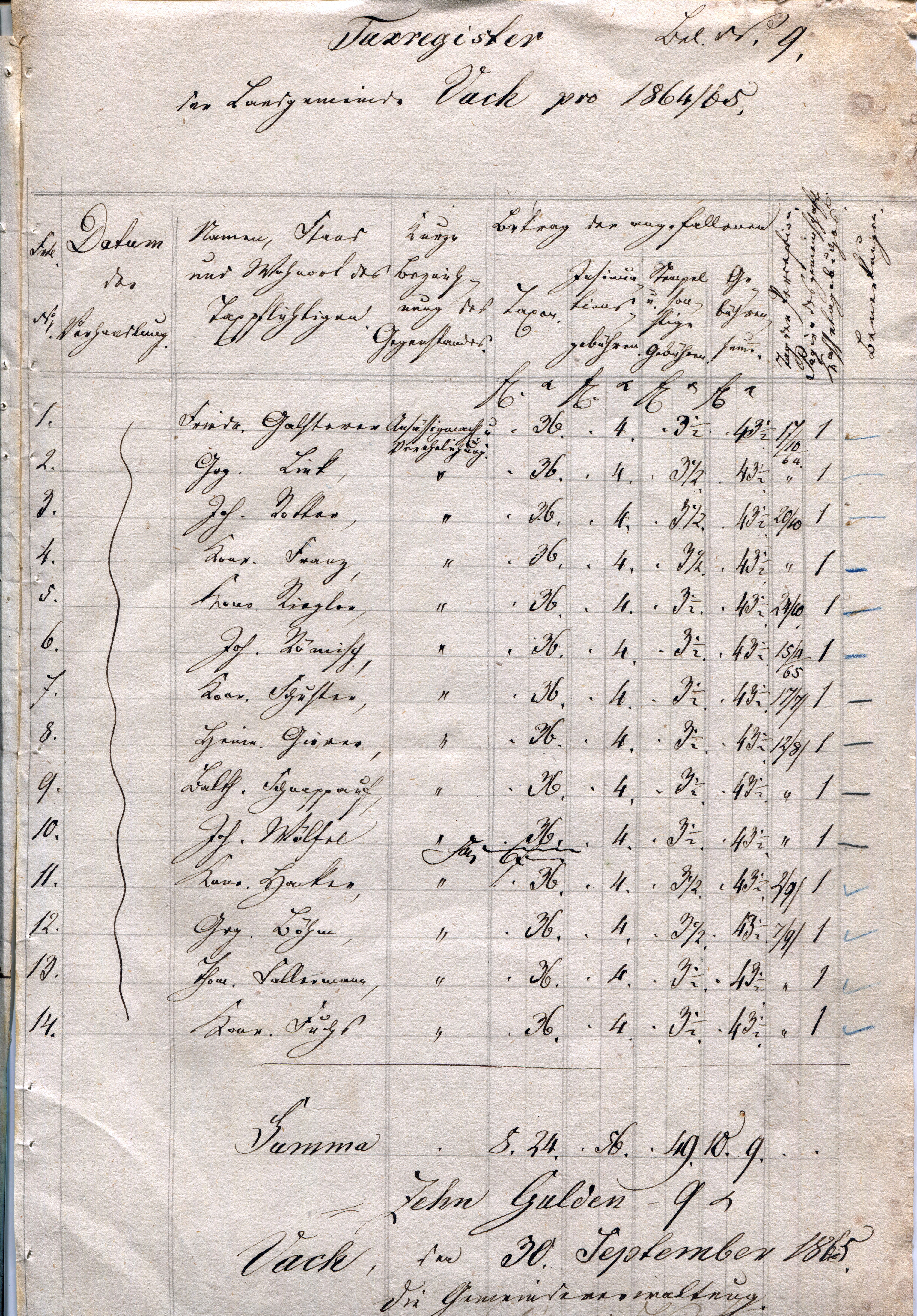 Steueregister (Taxregister) der Gemeinde Vach 1864/1865 Urheber: Vach<br>Erstellungsdatum: 1864<br>Lizenz: cc-by-sa-3.0