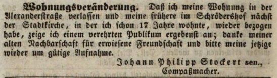 BeschreibungZeitungsanzeige des Kompassmachers Johann Philipp Stockert sen., August 1843