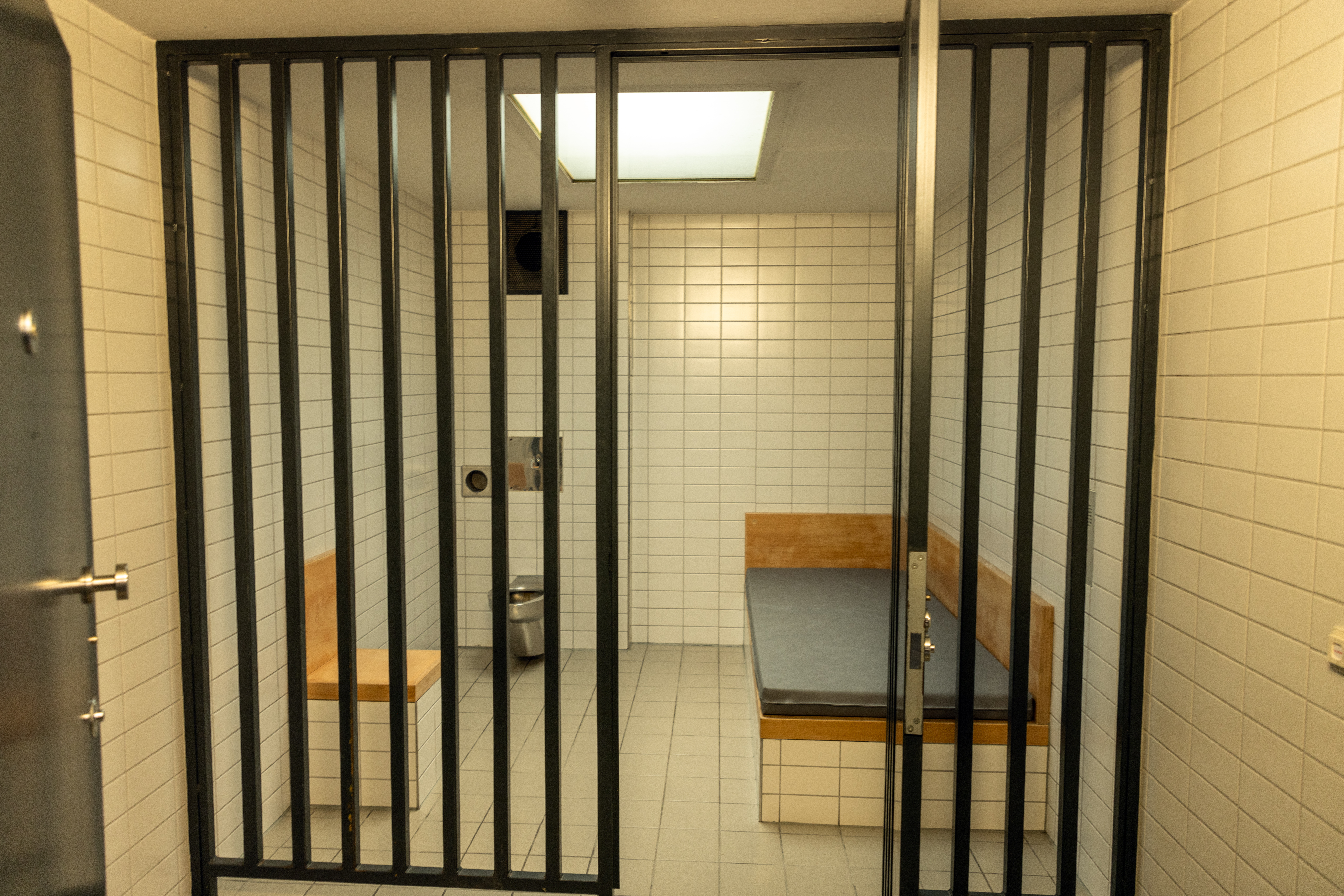 | Beschreibung | Tag der offenen Tür bei der Polizei Fürth - Gefängniszelle im Untergeschoss, Sept. 2024 | ||