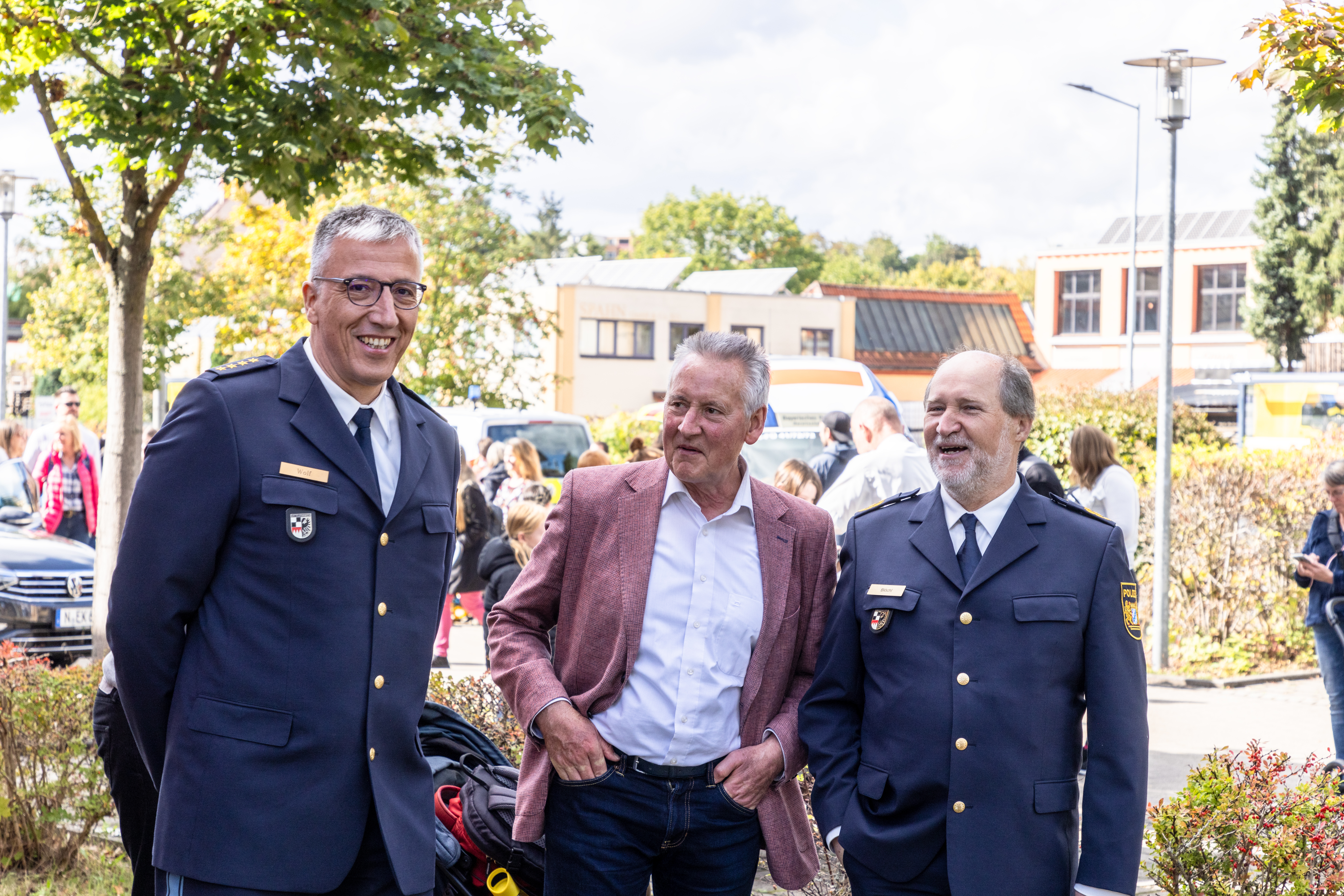 BeschreibungTag der offenen Tür bei der Polizei Fürth - v.l.n.r.: Polizeidirektor Bernd Wolf, OB Thomas Jung, Polizeipräsident Adolf Blöchl, Sept. 2024