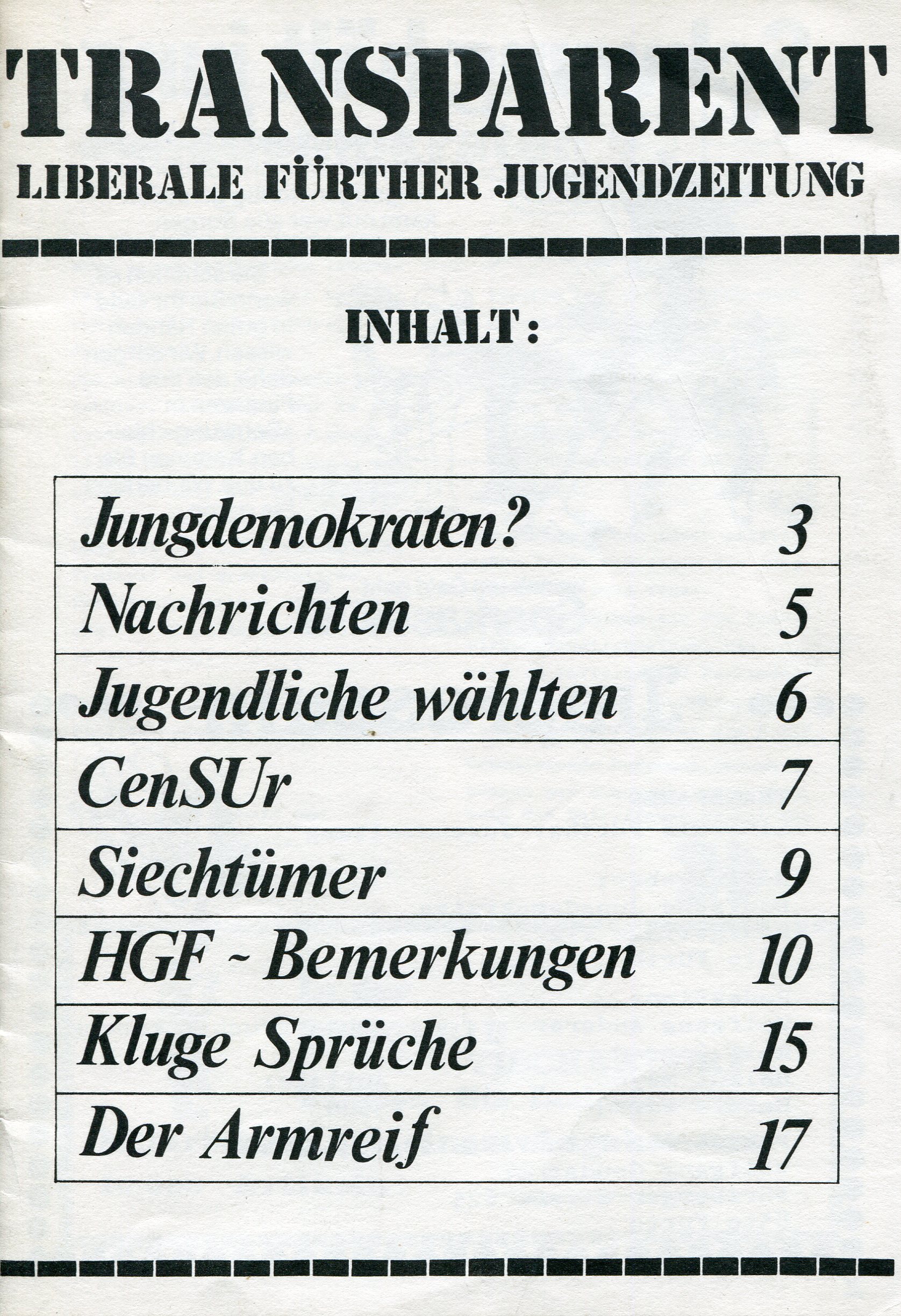Transparent, liberale Fürther Jugendzeitung der Jungdemokraten. Erstellungsdatum: 1978<br>Lizenz: cc-by-sa-3.0