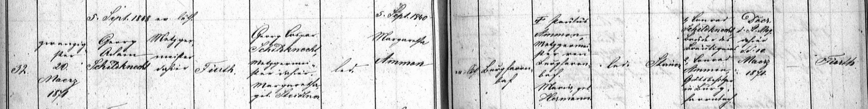| Beschreibung | Traueintrag G. Adam Schildknecht und Margaretha geb. Ammon, 20. März 1871 | ||