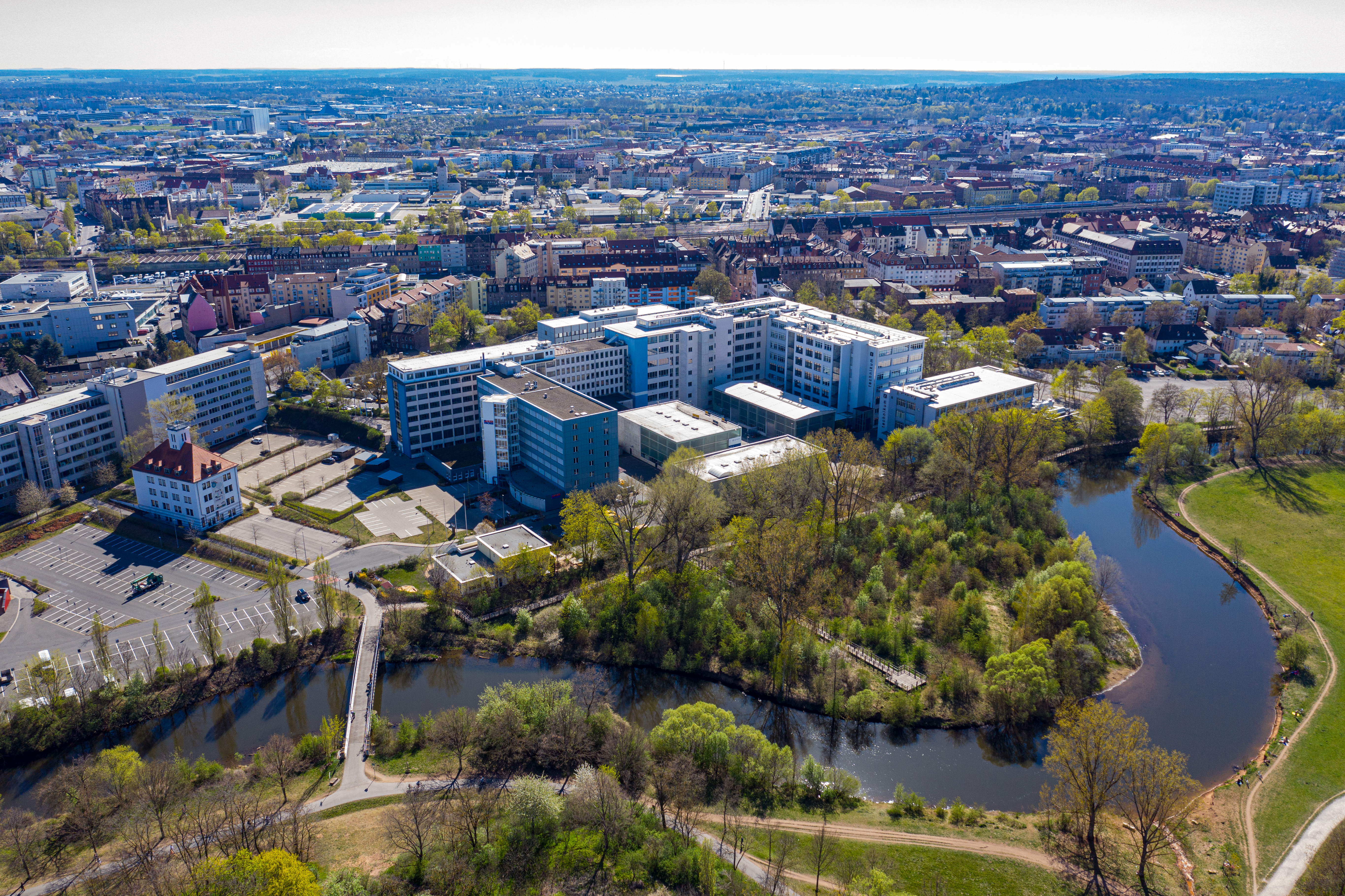 | Beschreibung | Blick über die Uferstadt Fürth, der ehem. Grundig AG bzw. Grundig Hauptverwaltung, April 2020 | ||