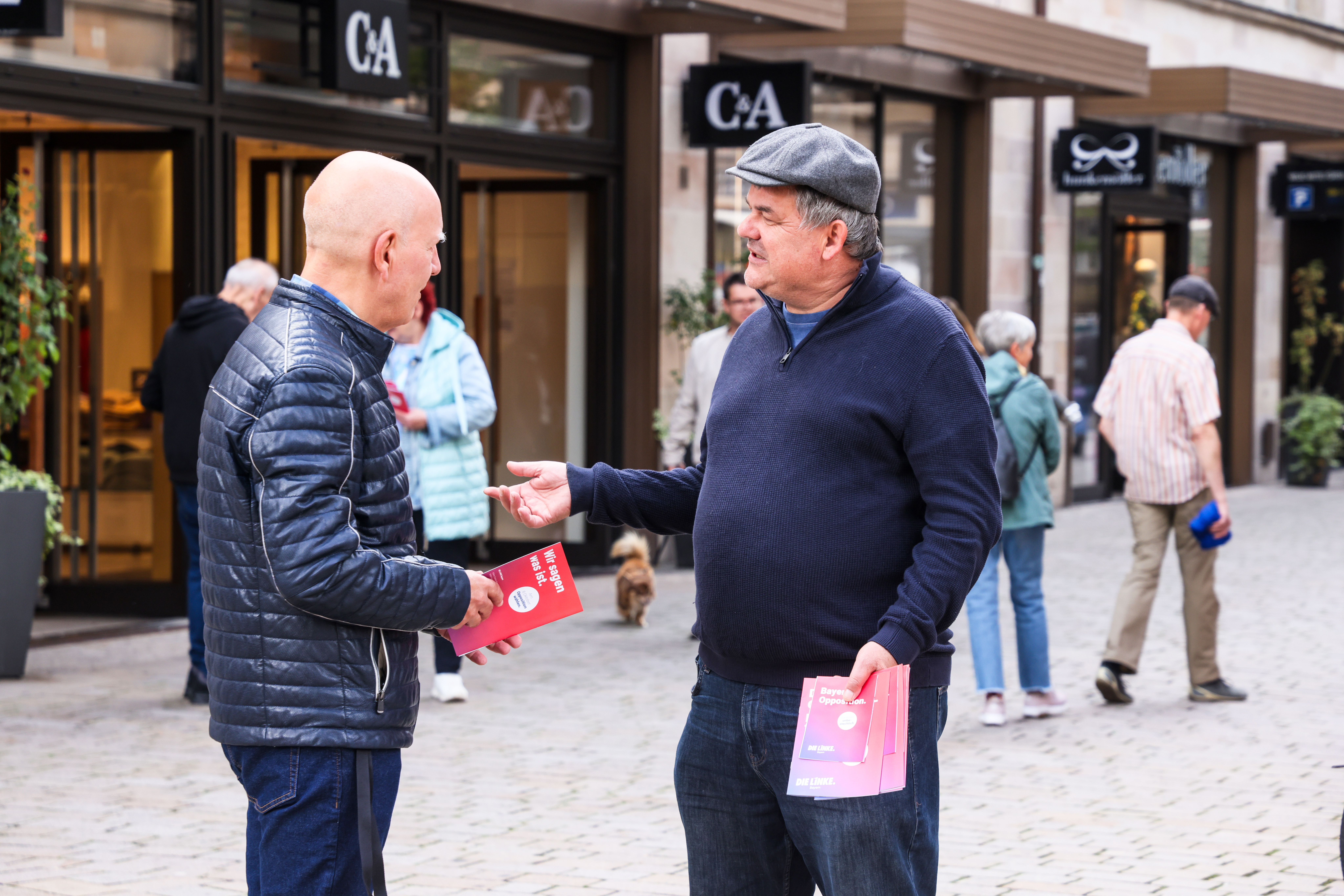 | Beschreibung | Stadtrat Uli Schönweiß von der Partei die Linke während der Landtagswahlen 2023 in der Fußgängerzone, Sept. 2023 | ||