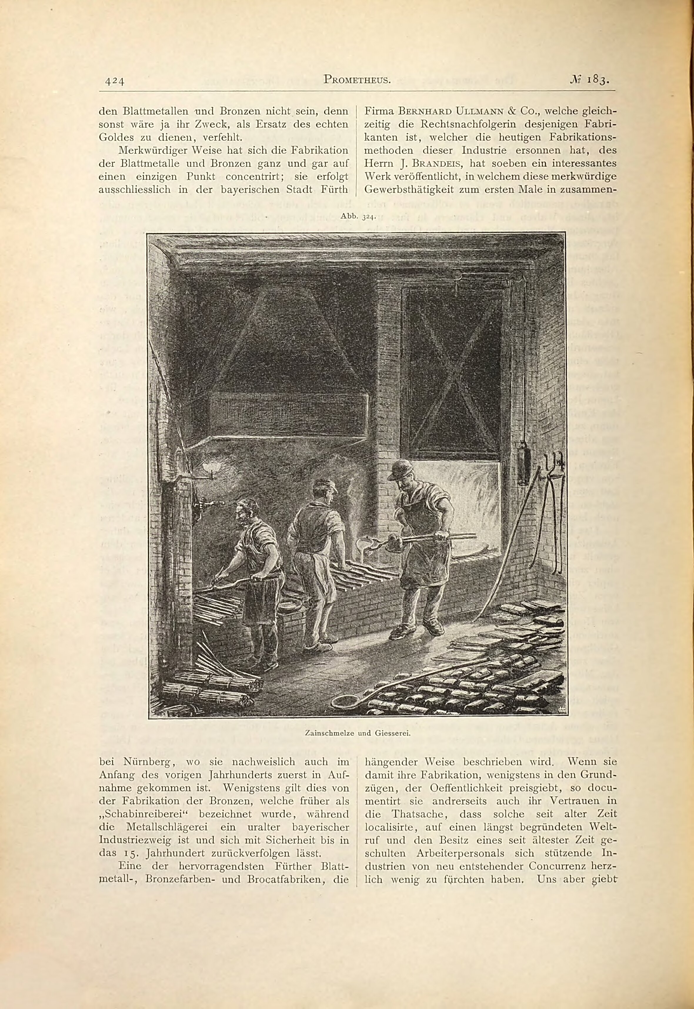 | Dateiinfo (Bild-Unterschrift und Info-Box, automatisch erstellt) | Beschreibung der Blattmetall- und Bronzefarbenfabrikation in Fürth in der Zeitschrift Prometheus. ... Beschreibung der Blattmetall- und Bronzefarbenfabrikation in Fürth in der Zeitschrift Prometheus. Die gezeigten Abbildungen stammen ursprünglich aus einer Denkschrift, die das Unternehmen Bernhard Ullmann & Co. im gleichen Jahr selbst herausgegeben hat.<br>Erstellungsdatum: 1893<br>Lizenz: noc-nc-1.0 | ||