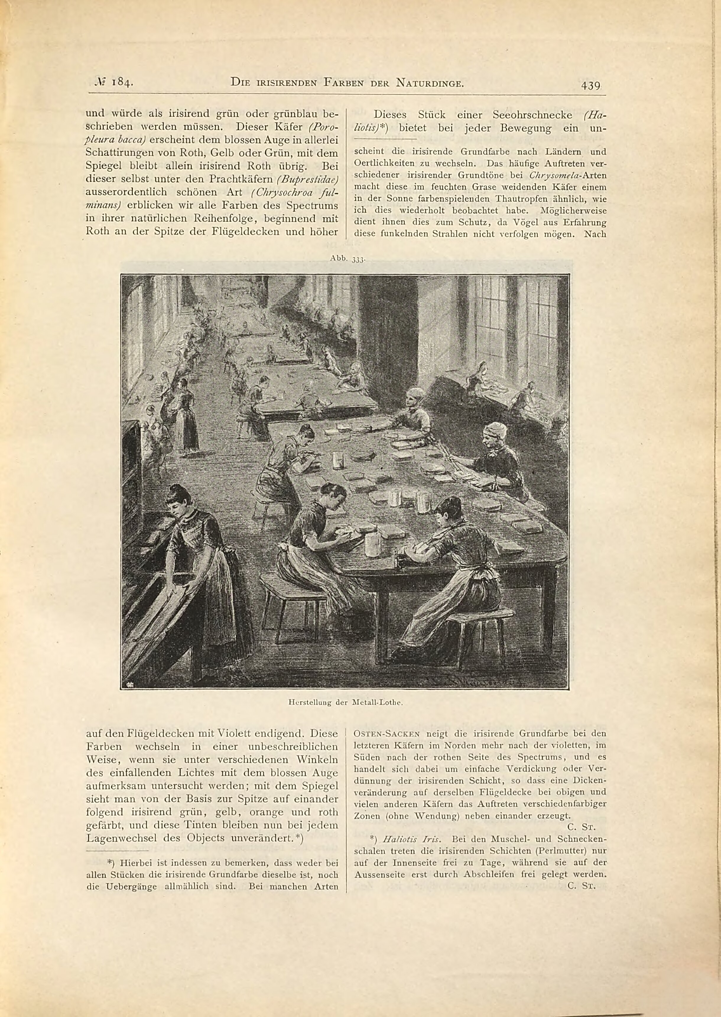 | Dateiinfo (Bild-Unterschrift und Info-Box, automatisch erstellt) | Beschreibung der Blattmetall- und Bronzefarbenfabrikation in Fürth in der Zeitschrift Prometheus. ... Beschreibung der Blattmetall- und Bronzefarbenfabrikation in Fürth in der Zeitschrift Prometheus. Die gezeigten Abbildungen stammen ursprünglich aus einer Denkschrift, die das Unternehmen Bernhard Ullmann & Co. im gleichen Jahr selbst herausgegeben hat.<br>Erstellungsdatum: 1893<br>Lizenz: noc-nc-1.0 | ||