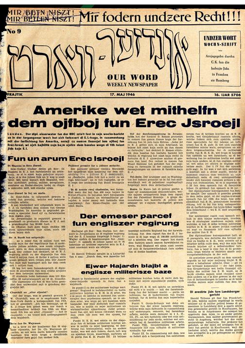 | Beschreibung | Titelblatt Undzer Wort, 17. März 1946 | ||