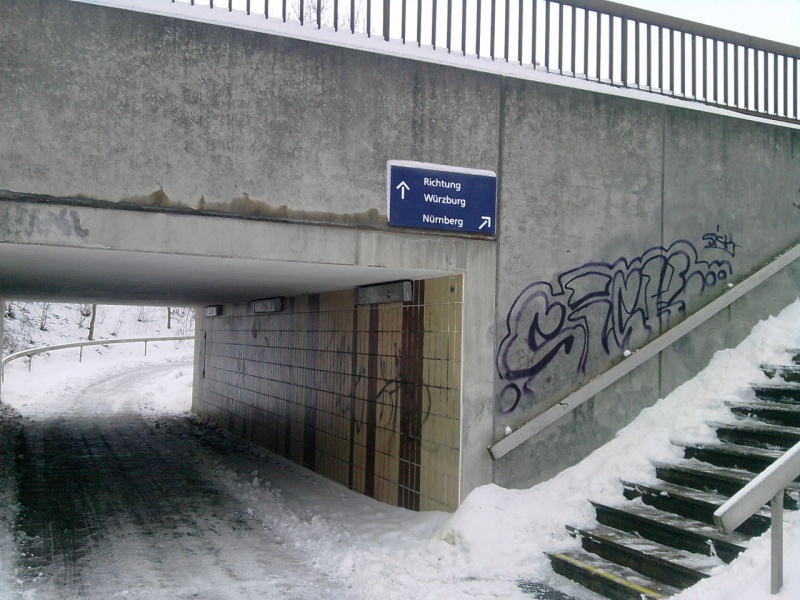 | Dateiinfo (Bild-Unterschrift und Info-Box, automatisch erstellt) | Fußgängerunterführung Lycker Str. - Allensteiner Str., Bahnstrecke Nürnberg-Würzburg Urheber: El desperado<br>Erstellungsdatum: 2. Februar 2010<br>Lizenz: cc-by-sa-3.0 | ||