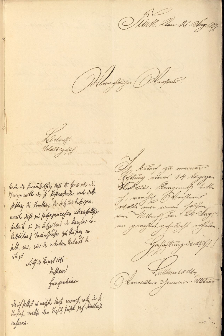 Urlaubsantrag Lichtenstädter, 21. August 1891 Urheber: Lichtenstädter<br><br>Lizenz: CC BY-NC-ND 4.0