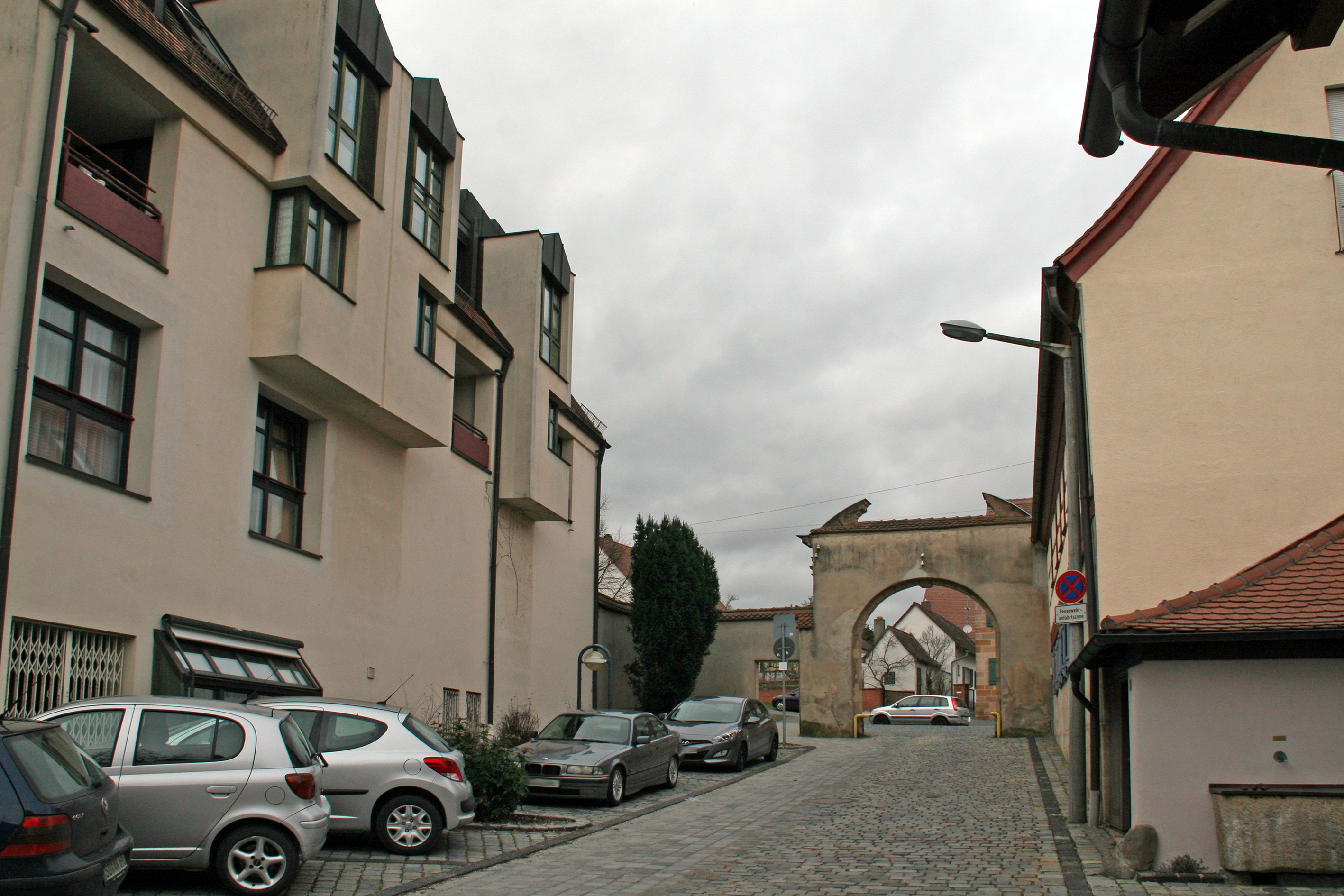 Rückseite des Sandsteintor zum Schloss Burgfarrnbach an der Würzburger Straße, 2016 Urheber: Kamran Salimi<br>Erstellungsdatum: 7. Februar 2016<br>Lizenz: cc-by-sa-3.0