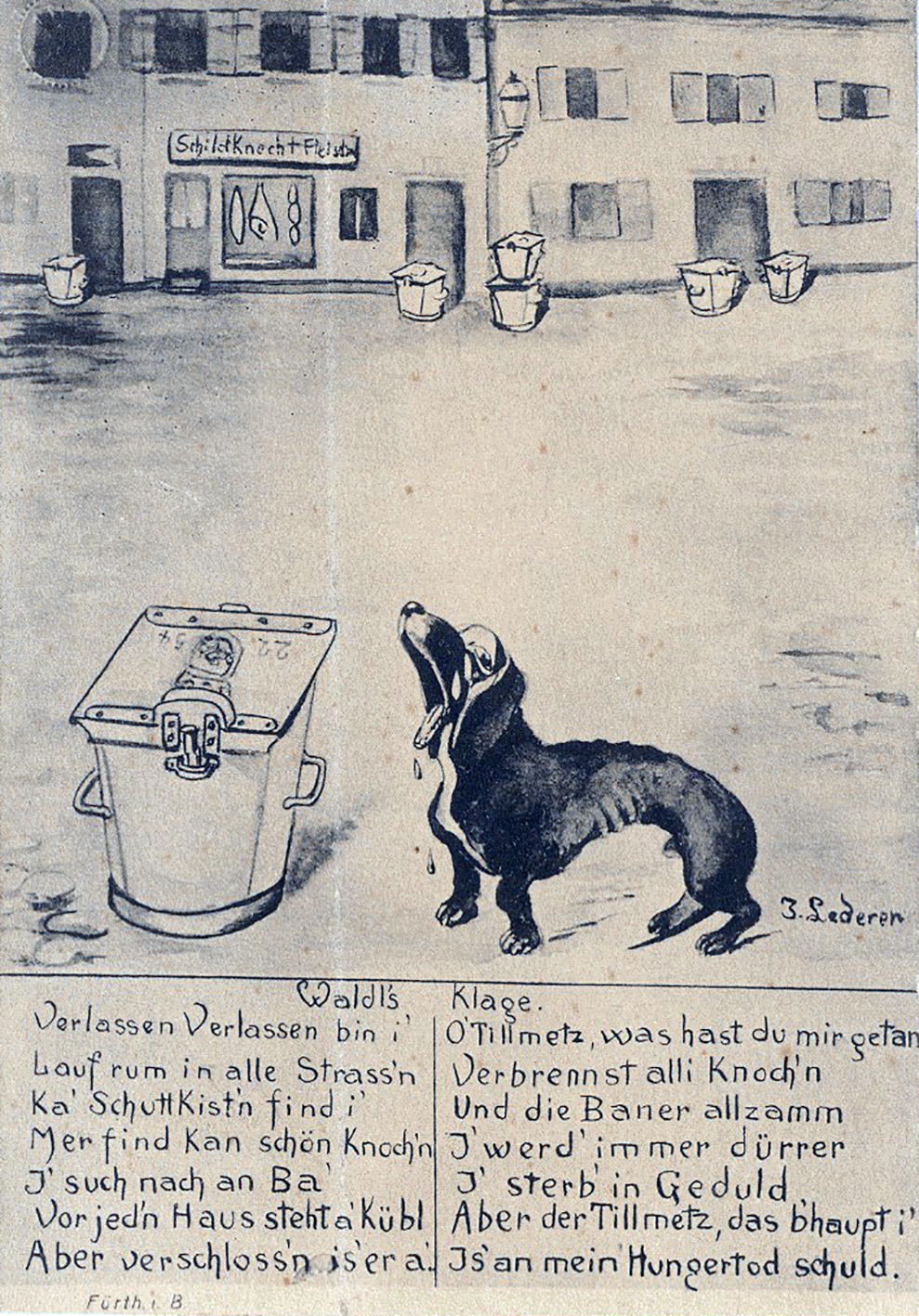 Postkarte von Jean Lederer mit Satire zur neu errichteten Müllverbrennungsanlage. Um 1914 Urheber: Jean Lederer<br>Lizenz: cc-by-sa-3.0