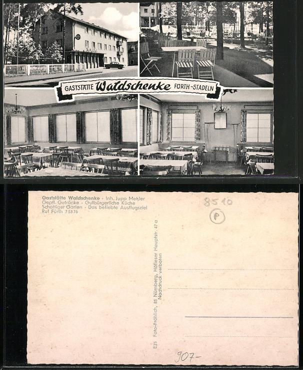 | Dateiinfo (Bild-Unterschrift und Info-Box, automatisch erstellt) | Zeitgenössische Ansichtskarte Waldschänke Stadeln Urheber: Foto-Fröhlich<br>Lizenz: cc-by-sa-3.0 | ||