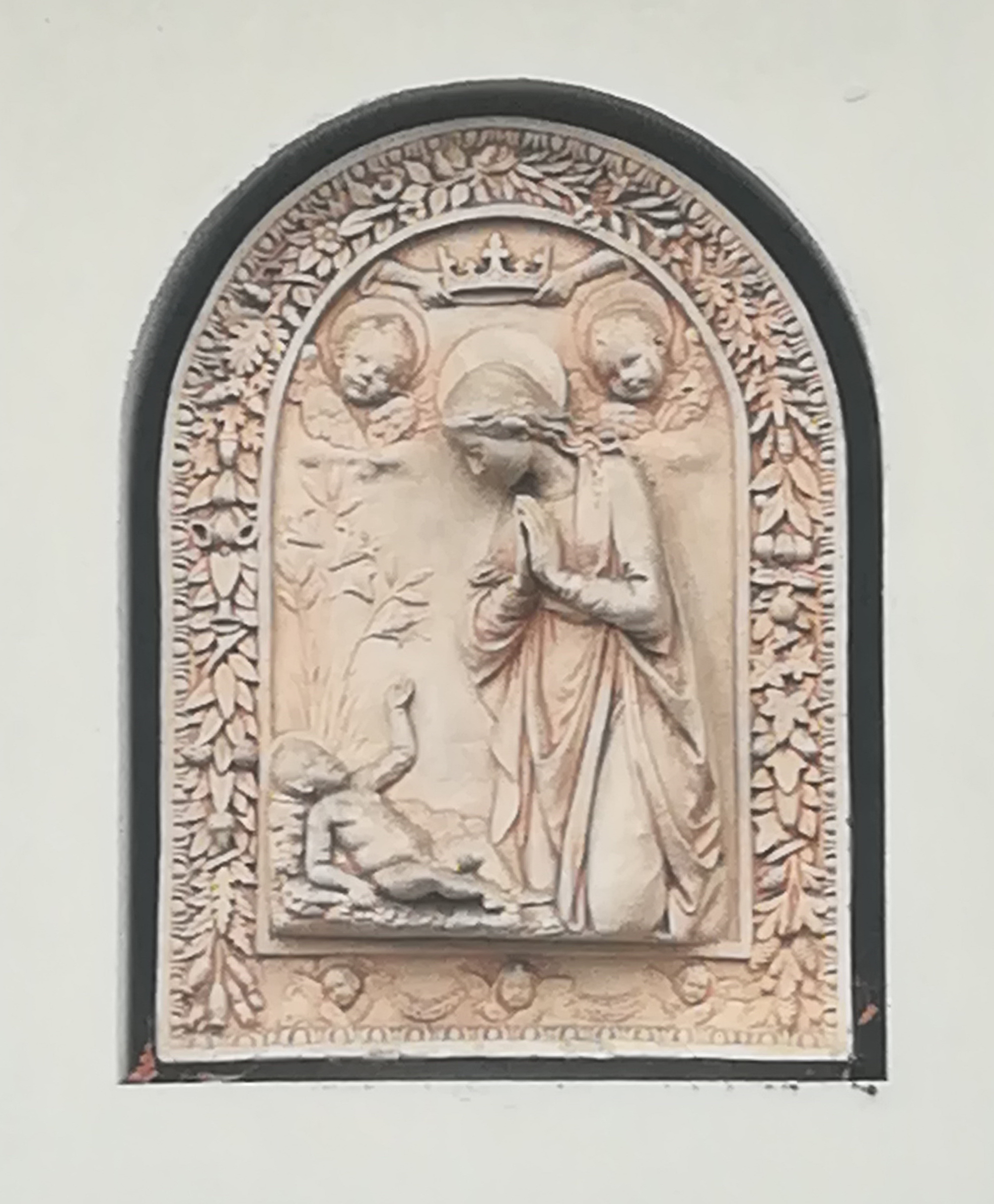 | Dateiinfo (Bild-Unterschrift und Info-Box, automatisch erstellt) | Marienbild am Anwesen Lindenstraße 9 Urheber: Alexander Mayer<br>Erstellungsdatum: 2020<br>Lizenz: cc-by-sa-3.0 | ||