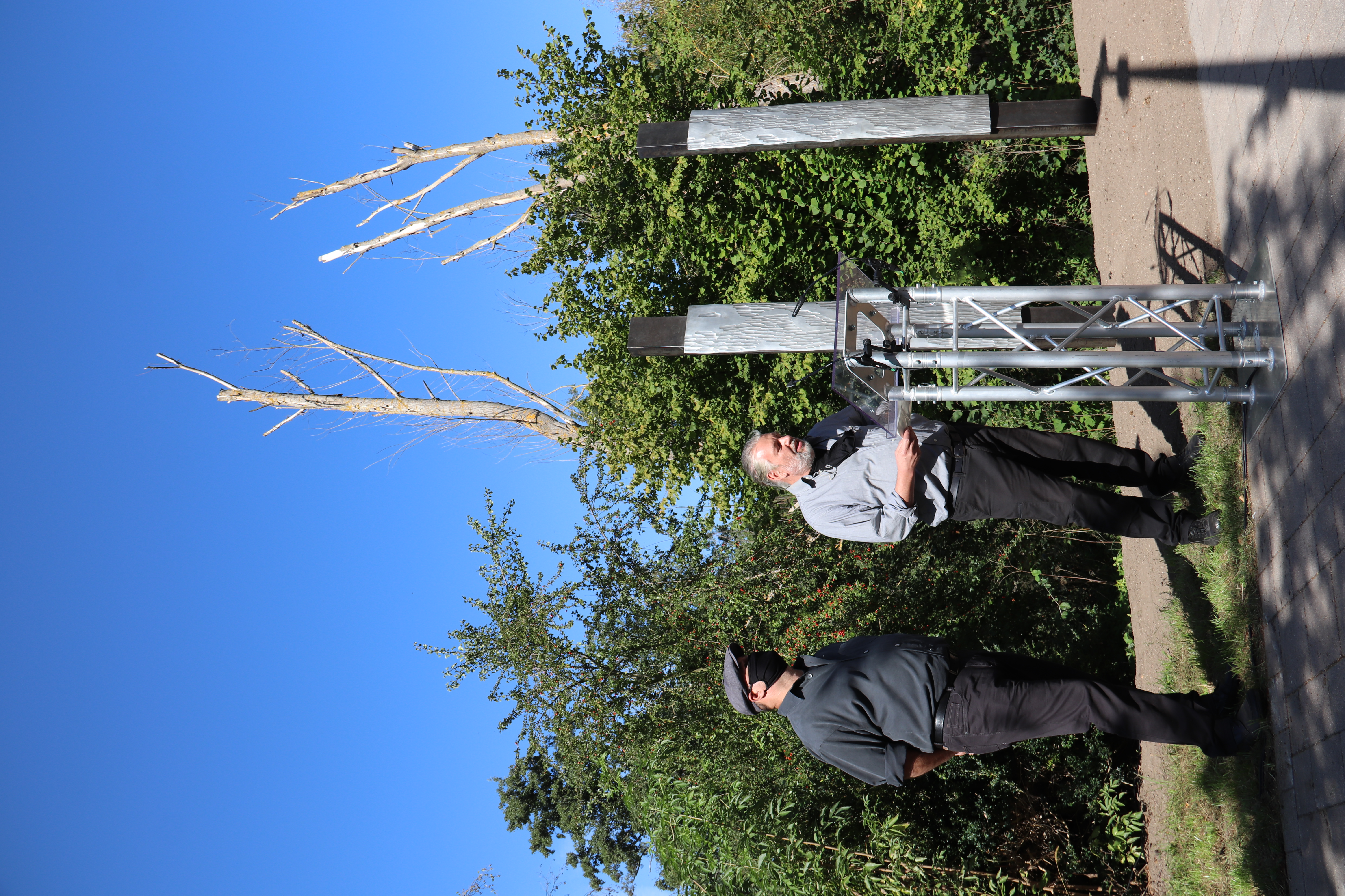 | Beschreibung | Einweihung der Rudolf-Benario-Gedenkstätte, am Rednerpult der Metallgestalter Uwer Weber, links Roland Hermann, Sept. 2020 | ||