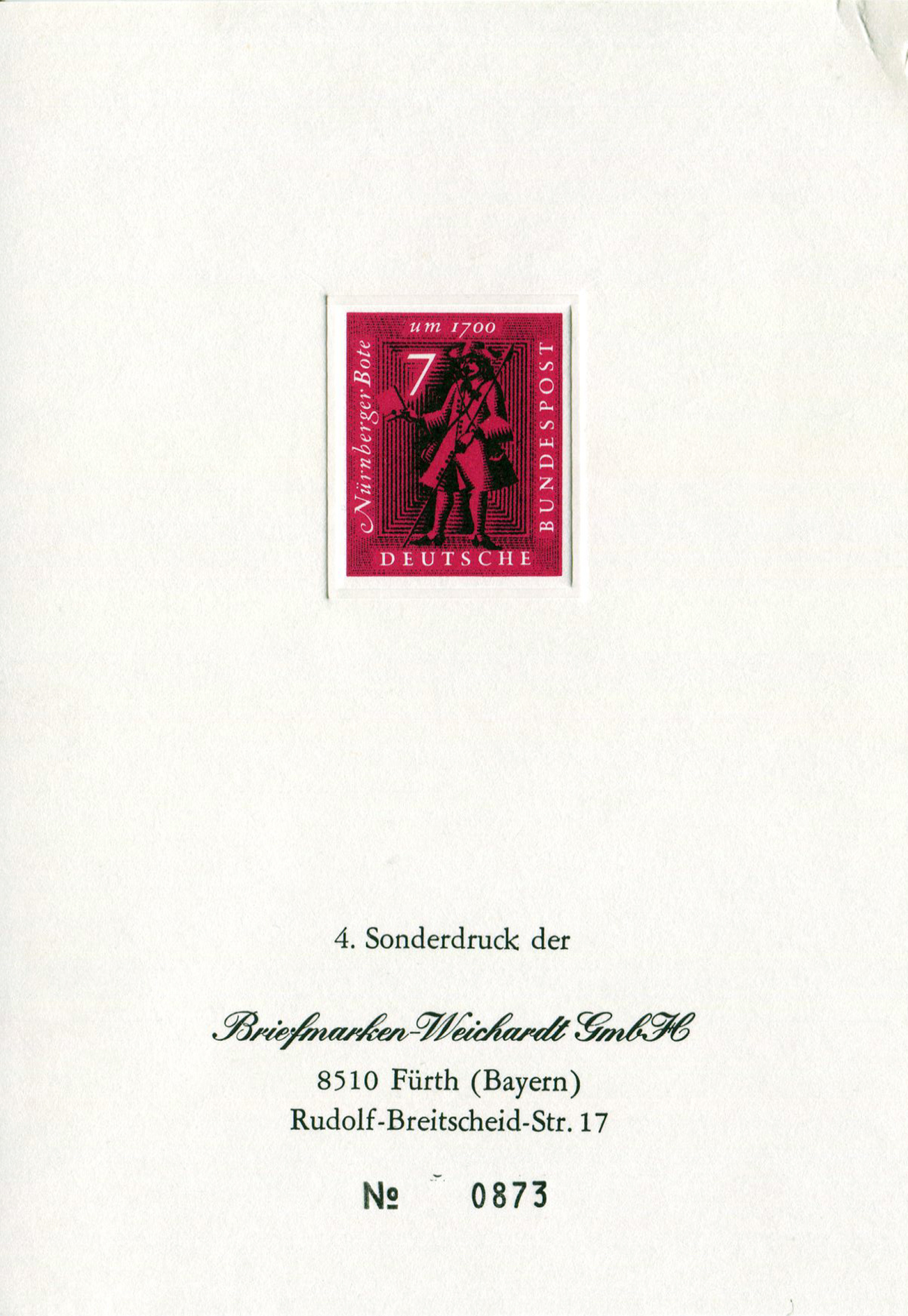 4. Sonderdruck der Briefmarken-Weichardt GmbH, Nr. 873, 1961 Urheber: Briefmarken-Weichardt GmbH<br>Erstellungsdatum: 1961<br>Lizenz: copyright