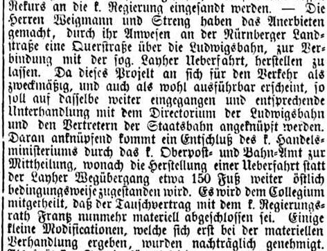 | Beschreibung | Zeitungsbericht über Bahnübergang auf dem Grundstück von "Weigmann & Streng", Dezember 1865 | ||