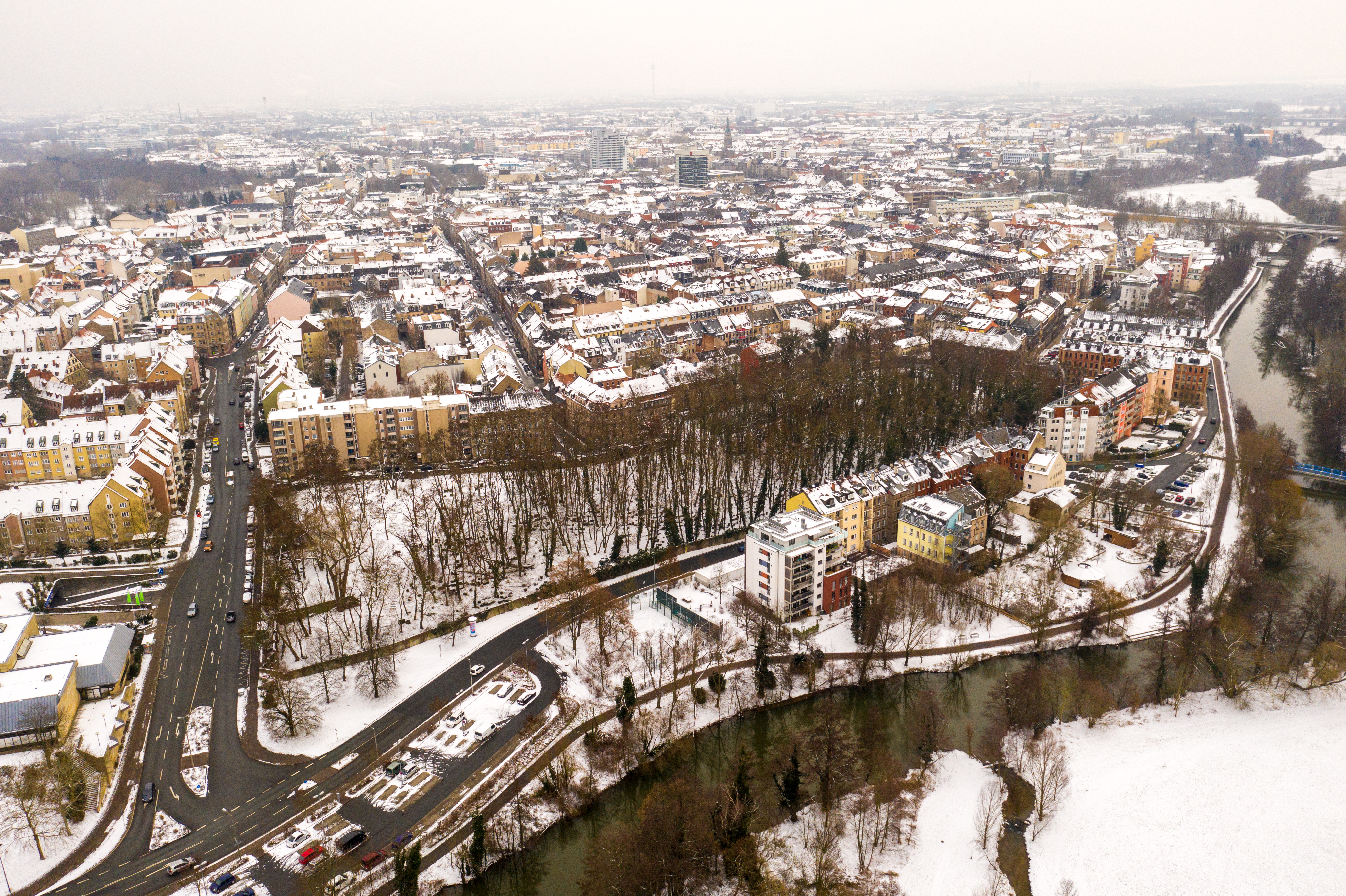| Beschreibung | Blick von Westen nach Osten über den Jüd. Friedhof - Weiherstraße / Rosenstraße, Jan. 2019 | ||