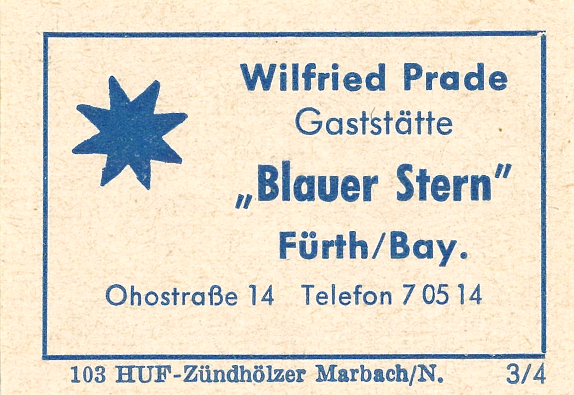 | Beschreibung | Zündholzschachtel-Etikett der ehemaligen Gaststätte Blauer Stern, um 1965 | ||