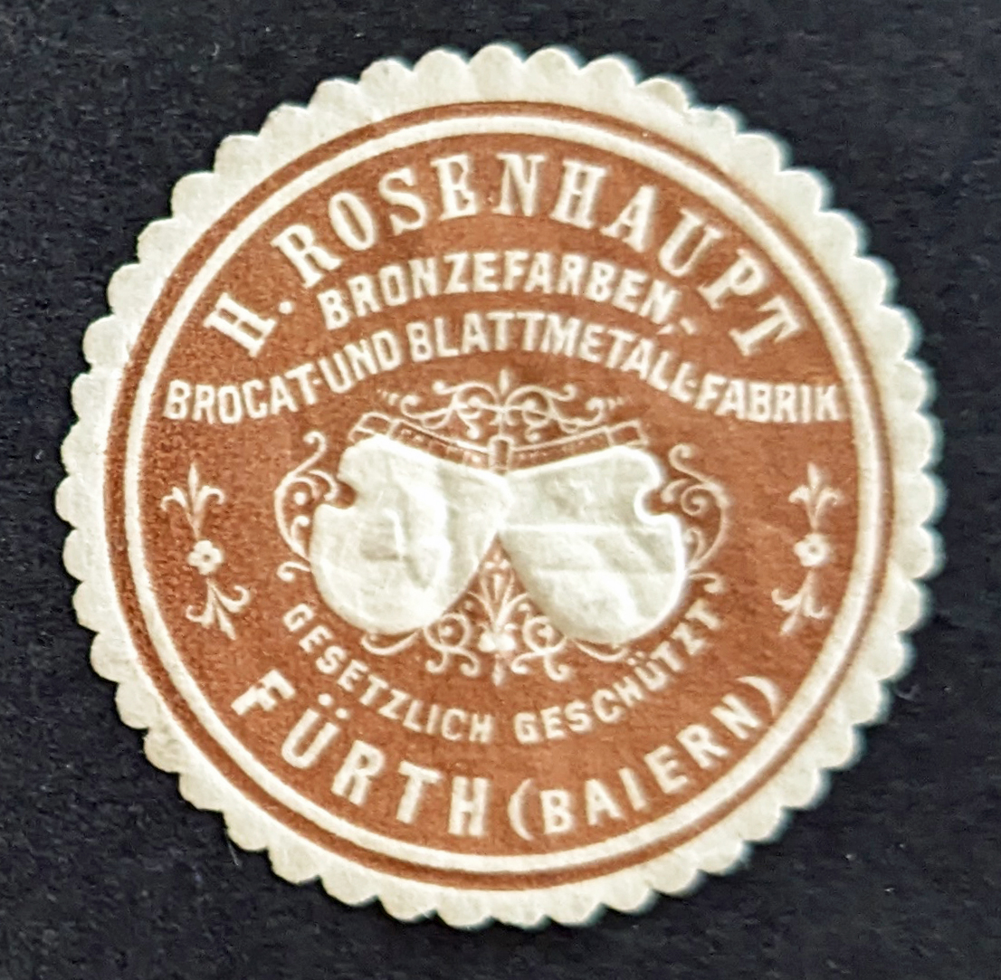 | Unternehmen | Bronzefarben, Brocat- und Blattmetall-Fabrik Hermann Rosenhaupt | ||