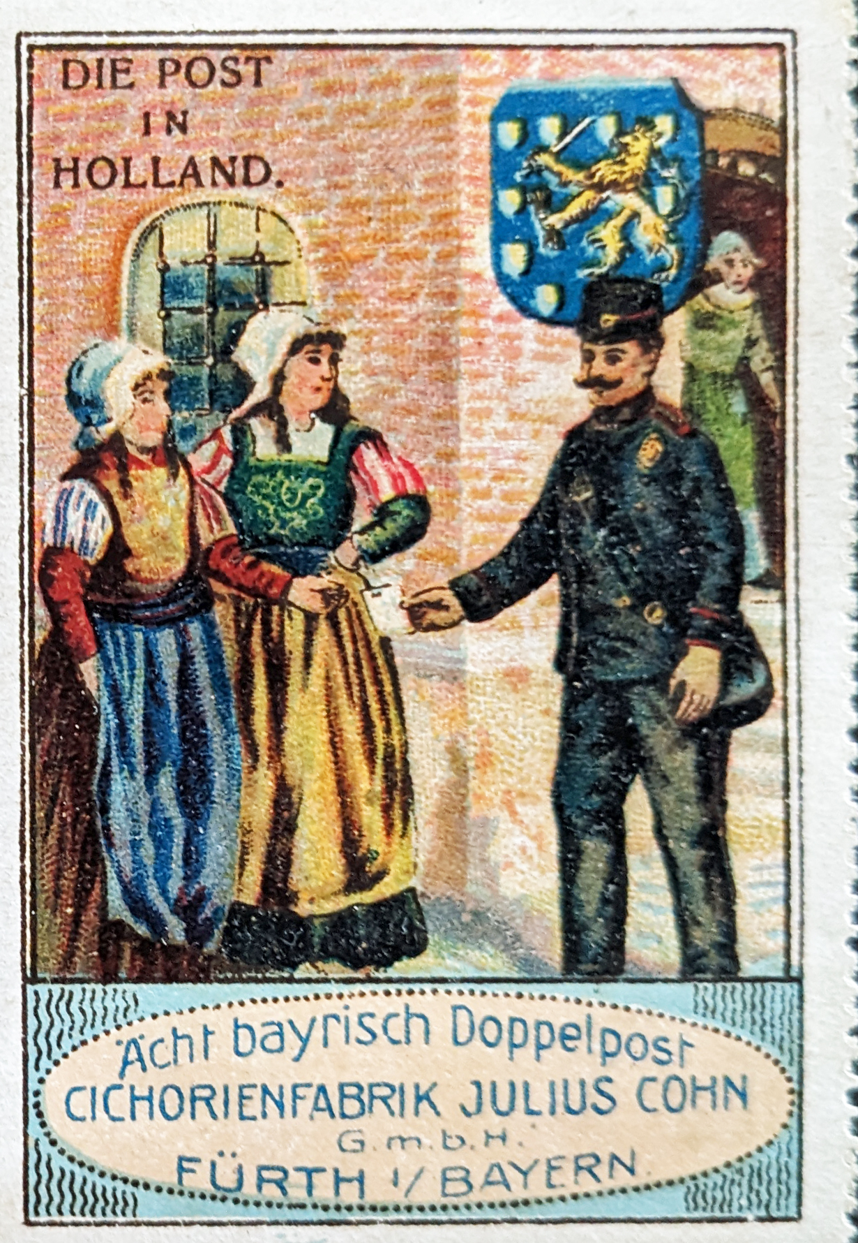 | Beschreibung | Historische Reklamemarke der Cichorienfabrik Julius Cohn, ca. 1913 | ||