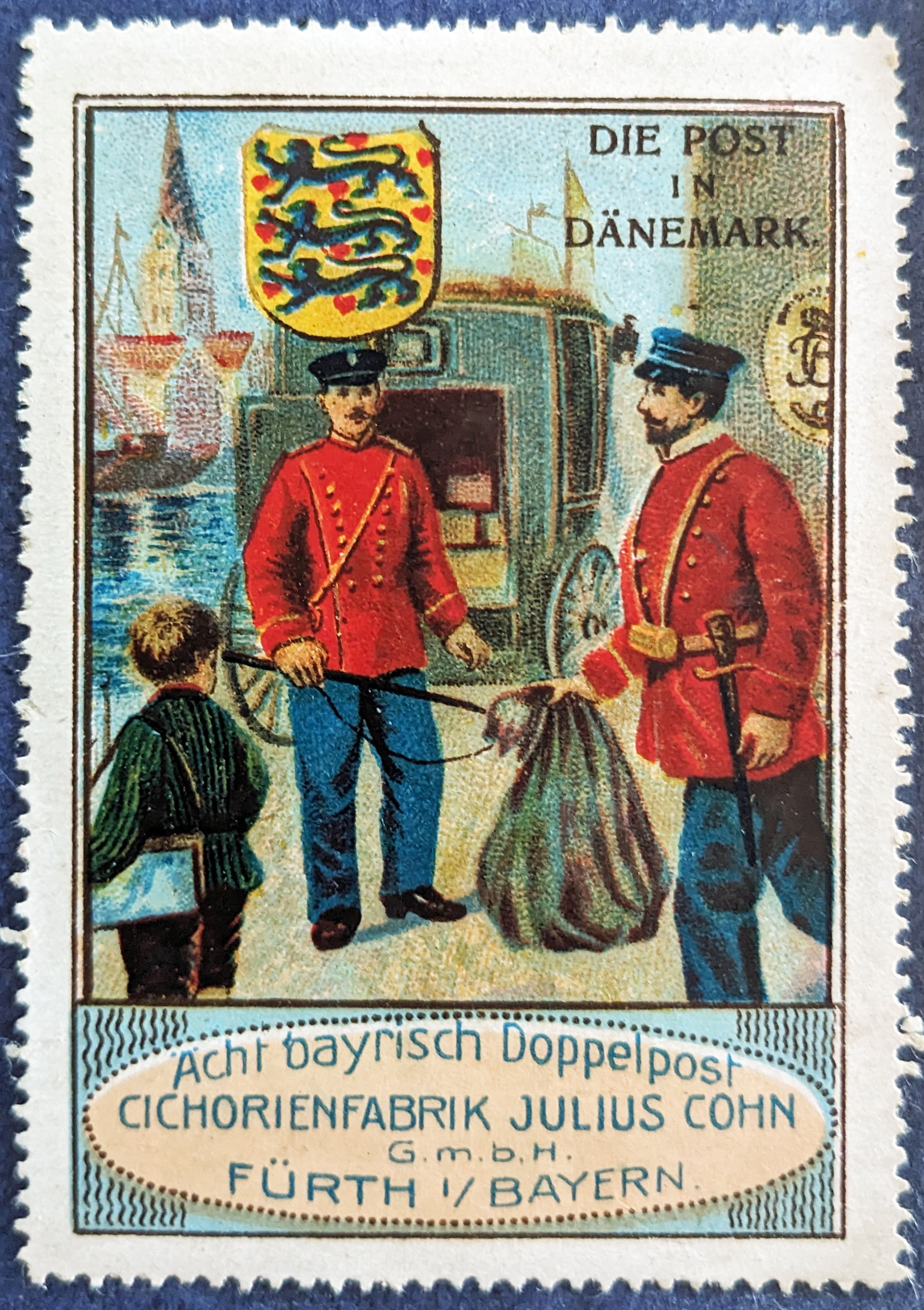 | Beschreibung | Historische Reklamemarke der Cichorienfabrik Julius Cohn, ca. 1913 | ||
