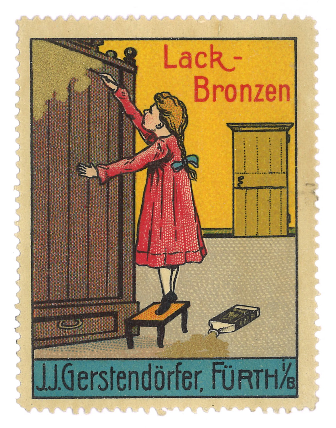 | Beschreibung | Historische Reklamemarke des Bronzefarbenherstellers J. J. Gerstendörfer | ||