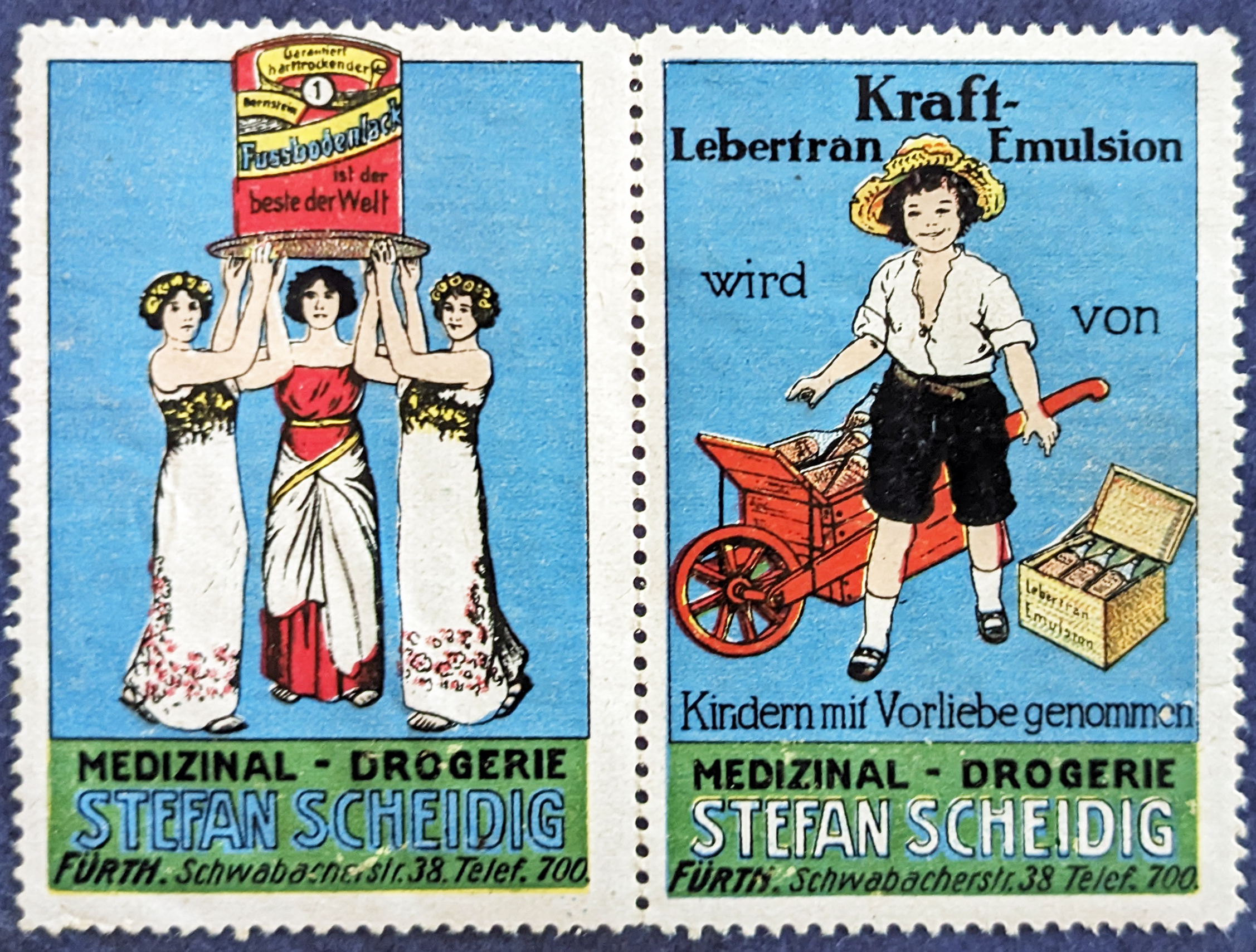 | Beschreibung | Historische Reklamemarke der Drogerie Stefan Scheidig, ca. 1913 | ||