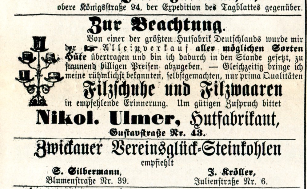 | Beschreibung | Werbung im Fürther Tagblatt vom 7. Dezember 1884 | ||