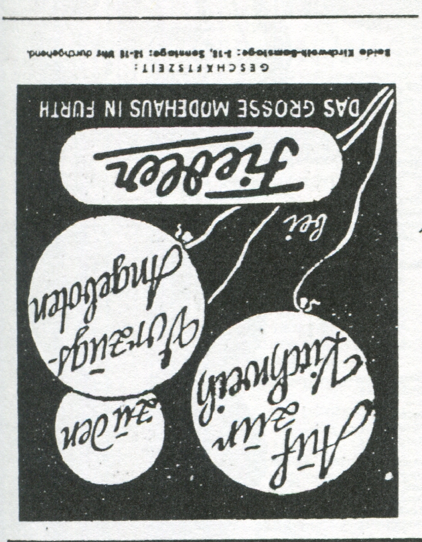 | Beschreibung | Werbung zur Fürther Kirchweih 1950 vom Modehaus Fiedler | ||