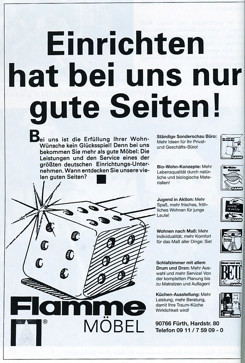 | Beschreibung | Werbung der Firma Flamme Möbel 1996 | ||
