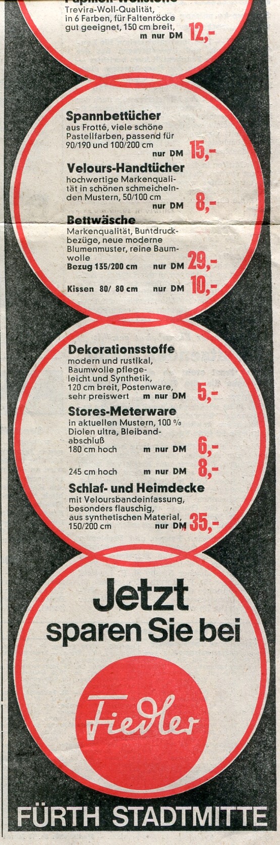 | Beschreibung | Werbung in der FN vom Modehaus Fiedler 1977 | ||