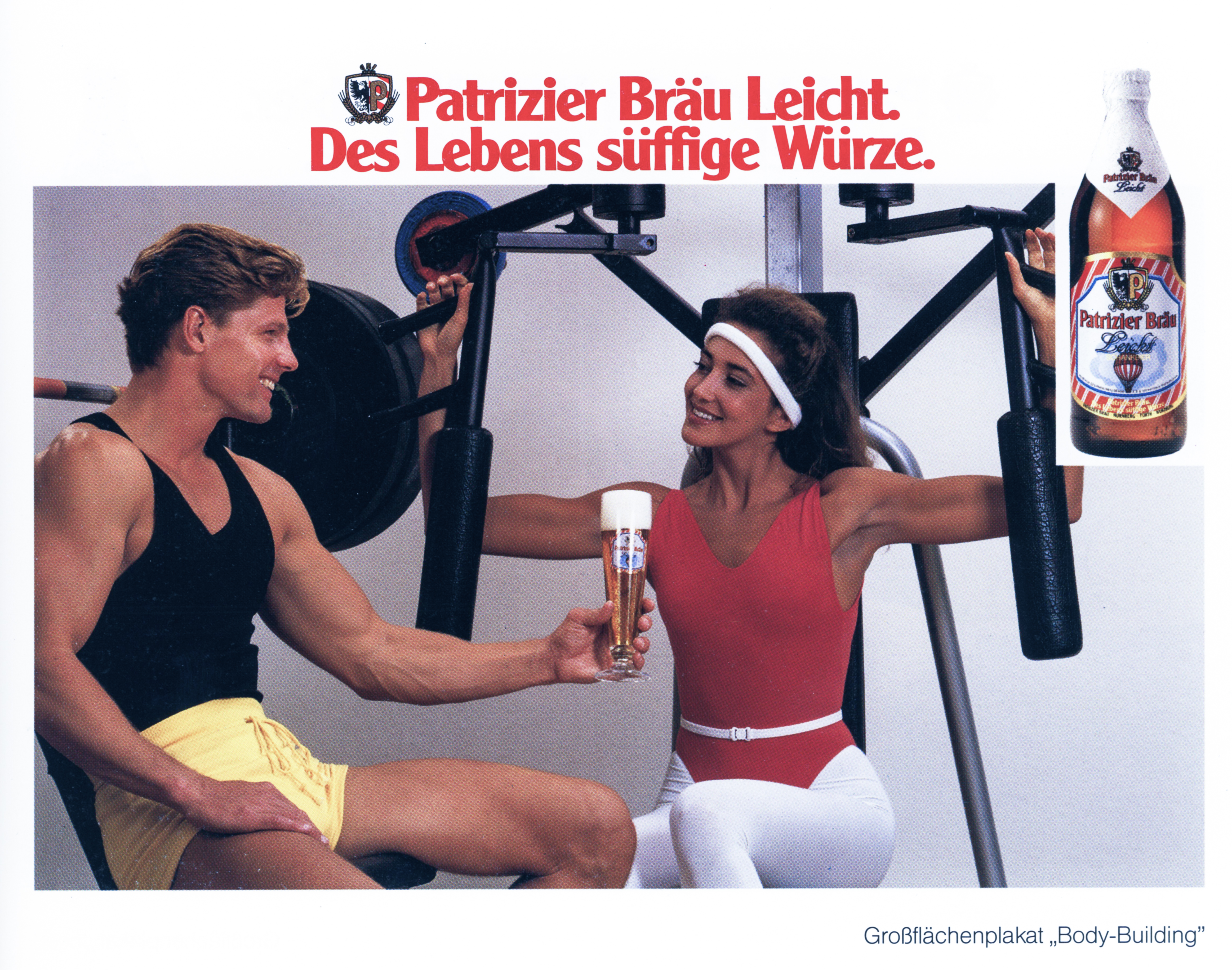 | Beschreibung | Werbung der Patrizier Bräu AG für das "Leichte Weizen-Bier", ca. 1985. | ||