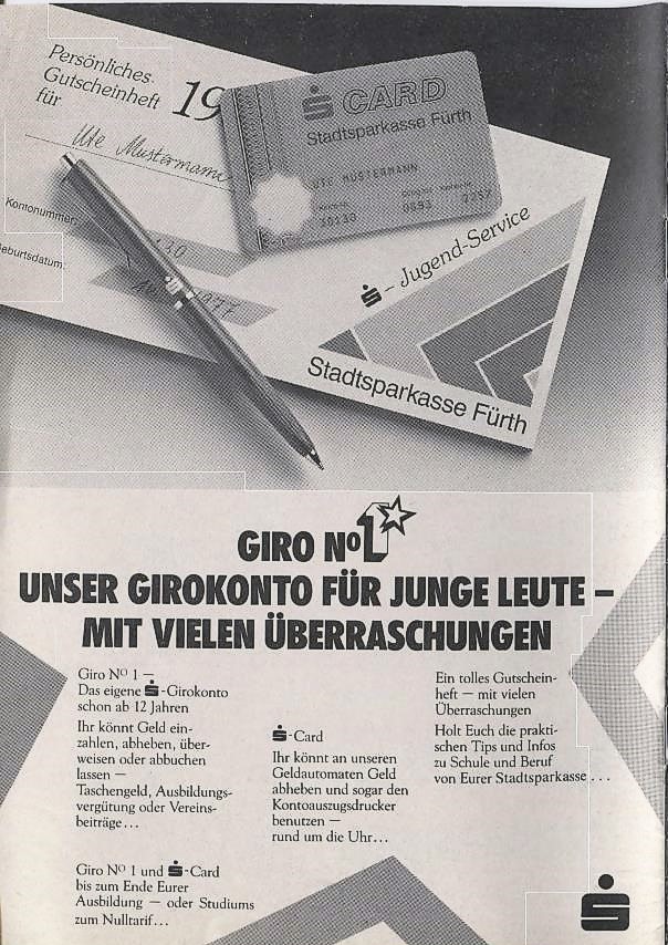 | Beschreibung | Werbung der Stadtsparkasse Fürth in der Schülerzeitung Die Pennalen Nr. 8 1991 | ||