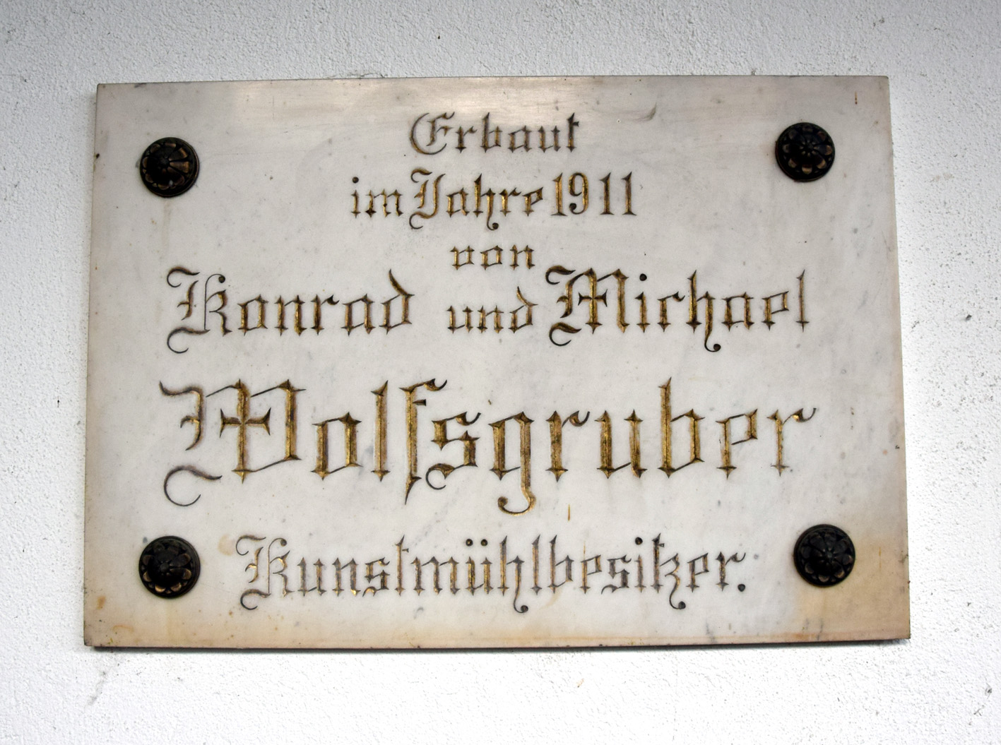 | Beschreibung | Wolfsgrubermühle - Schild der Bauherren, 2015 | ||
