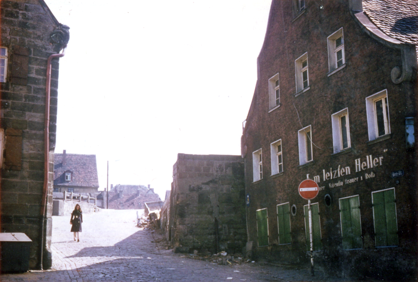 | Beschreibung | Bergstraße 29, Ehem. Gaststätte "Zum letzten Heller", im Hintergrund links Markgrafengasse 1. Aufnahme von 1973 | ||