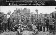Vielleicht war der Begriff Schwollis in ganz Franken gängig, denn der treue Hans schreibt an seine Gretel: "Auf dieser Karte siehst du die Hälfte unserer Schwollis, die mit kamen". Die Aufnahme entstand wohl noch in Bayreuth, aber ein guter Teil der Abgebildeten ging mit nach Fürth.--Alexander Mayer (Diskussion) 23:39, 27. Okt. 2025 (CET)