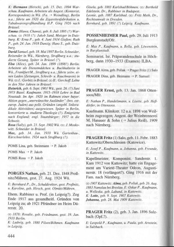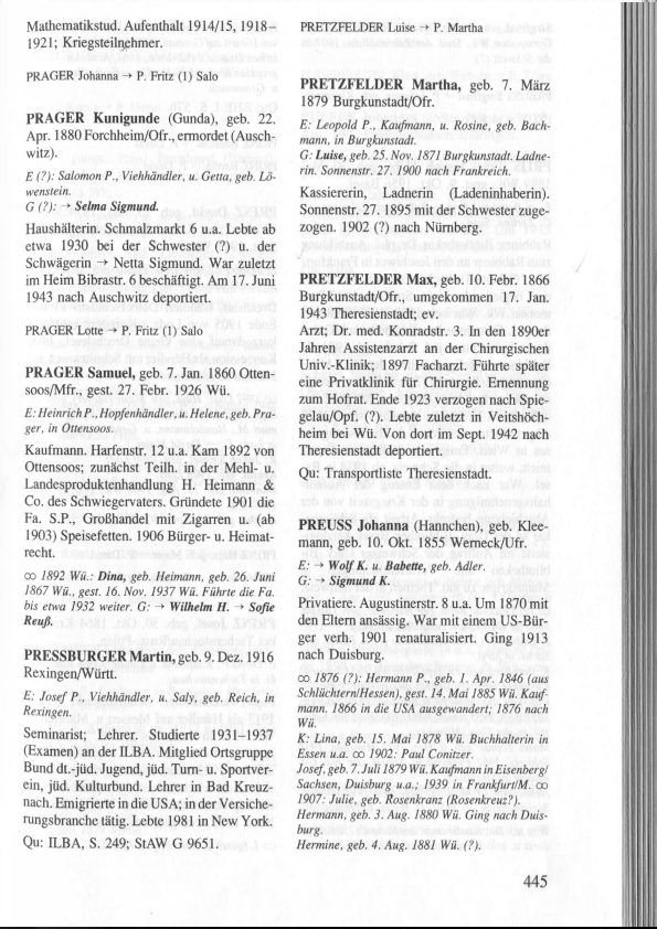 1. Reiner Strätz: Biographisches Handbuch Würzburger Juden 1900 – 1945; Seite 444 f., Prager Fritz (2) – online1 und – online2