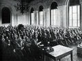 1928 unternahm die NSDAP in Fürth bei den Reichstags- und Landtagswahlen nach eigenen Angaben eine "außerordentliche Kraftanstrengung".[14] Die NSDAP zeichnete sich insbesondere dadurch aus, dass sie im Gegensatz zu den anderen politischen Parteien die Stadt Fürth mit einer Vielzahl von Veranstaltungen regelrecht überzog, wenn auch anfänglich mit nur mäßigem Erfolg. Während zum Beispiel der spätere Reichsminister des Inneren, Dr. Wilhelm Frick, lediglich 70 Zuhörer verbuchen konnte, gelang es der NSDAP am 28. März 1928 mit Adolf Hitler als Redner immerhin knapp 1.000 Zuhörer in Fürth zu mobilisieren. In den sog. "Kampfjahren" gelang des der NSDAP, neben Dr. Frick, Julius Streicher und Adolf Hitler auch Gregor Straßer (Reichspropagandaleiter) und Hermann Göring als Redner für Veranstaltungen in Fürth gewinnen zu können.