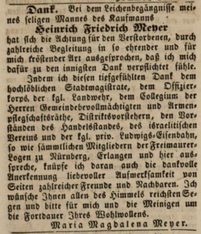 | 09:32, 8. Jan. 2026 | 1847-02-02 FÜ-TB Trauerdank Meyer.png (Datei) | 1.020 KB | {{Bild}}Danksagung der Kaufmannswitwe Maria Magdalena Meyer, Februar 1847 | 1 | |