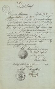 | 13:40, 17. Jan. 2026 | Fach 18a R 23 Prüfungszeugnis.jpg (Datei) | 2,37 MB | {{Bild}}Prüfungszeugnis des Kgl. Kreisbaubüros zu Ansbach vom 23. Februar 1836; Veröffentlichungsgenehmigung durch das Stadtarchiv Fürth vom 28.01.2025 | 1 | |